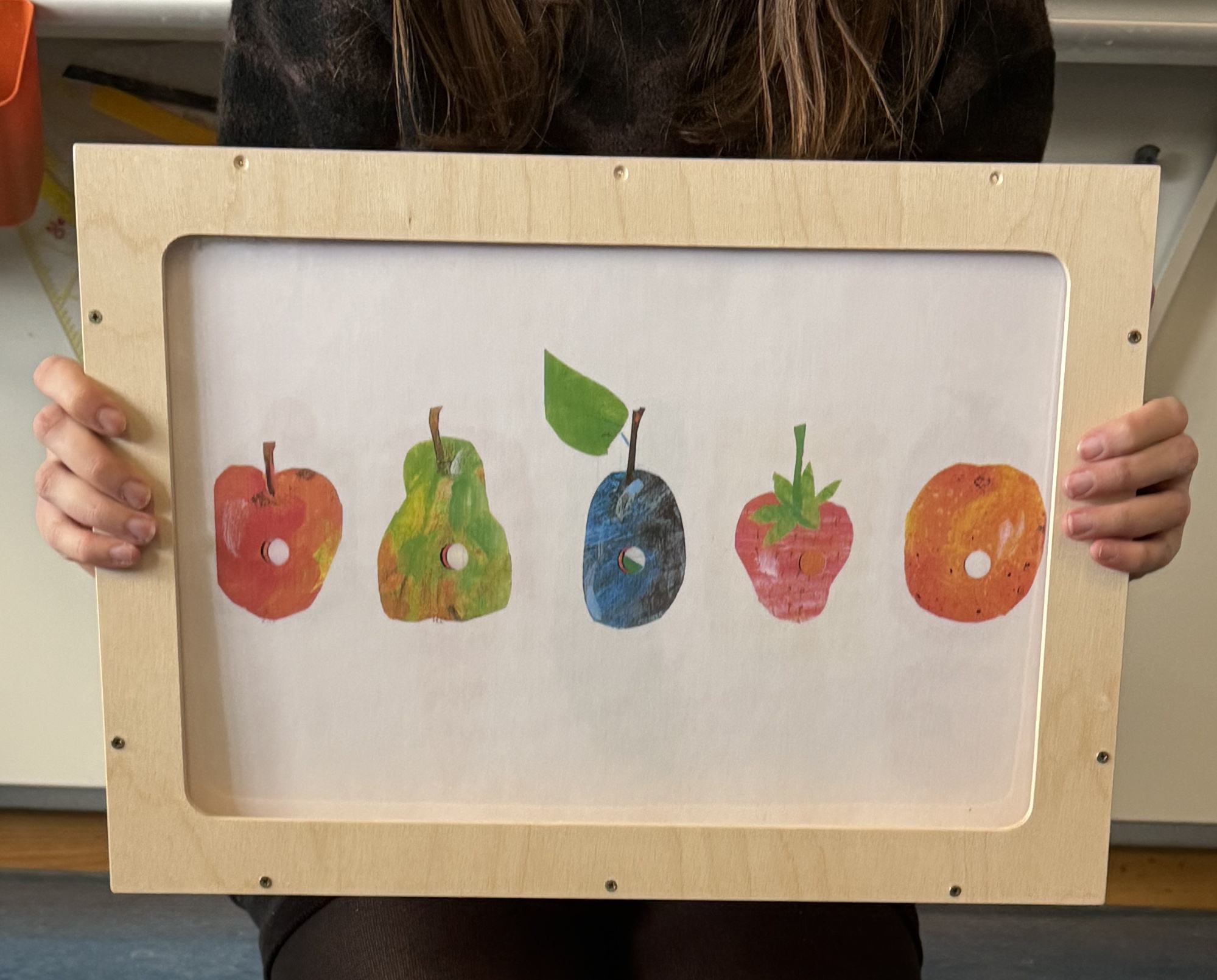 Das Buch „ Die Raupe Nimmersatt“ – im Englischen „The Very Hungry Caterpillar“ von Leo Lionni wurde als Kamishibai Theater vorgelesen.